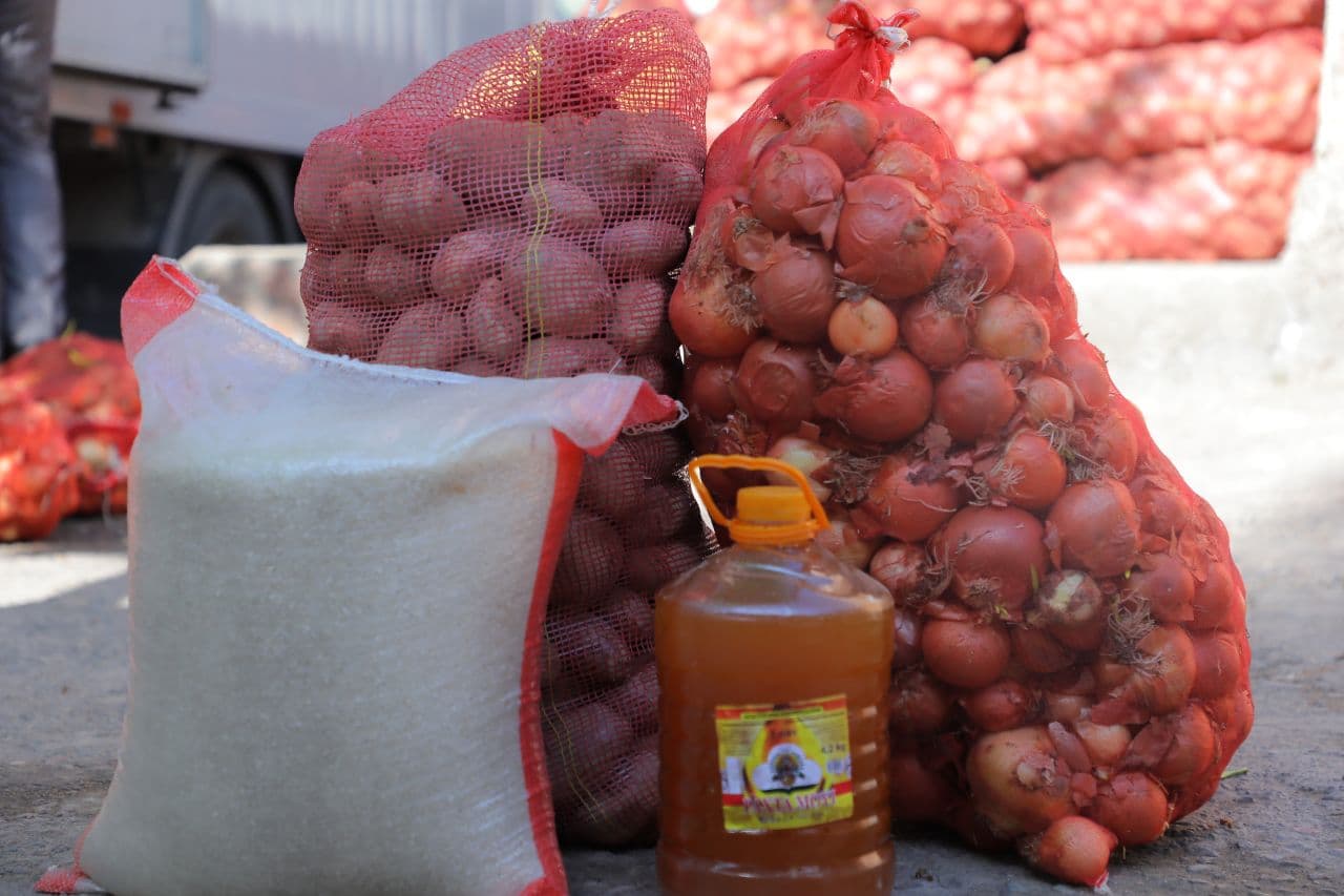 "Саҳоват ва кўмак" жамғармаси ҳисобидан 1 қоп картошка, 1 қоп пиёз, 20 кг гурунч ва 5 литр ёғ маҳсулотлари ўрин олган.