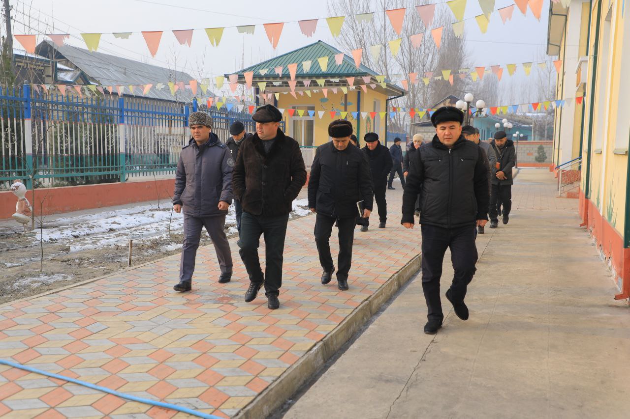 Ҳудуддаги ижтимоий соҳа объектларининг иситиш тизими кўздан кечирилди. Ўқувчилар билан суҳбат қурилди, боғчадаги болаларга яратилган шароитлар ўрганилди.