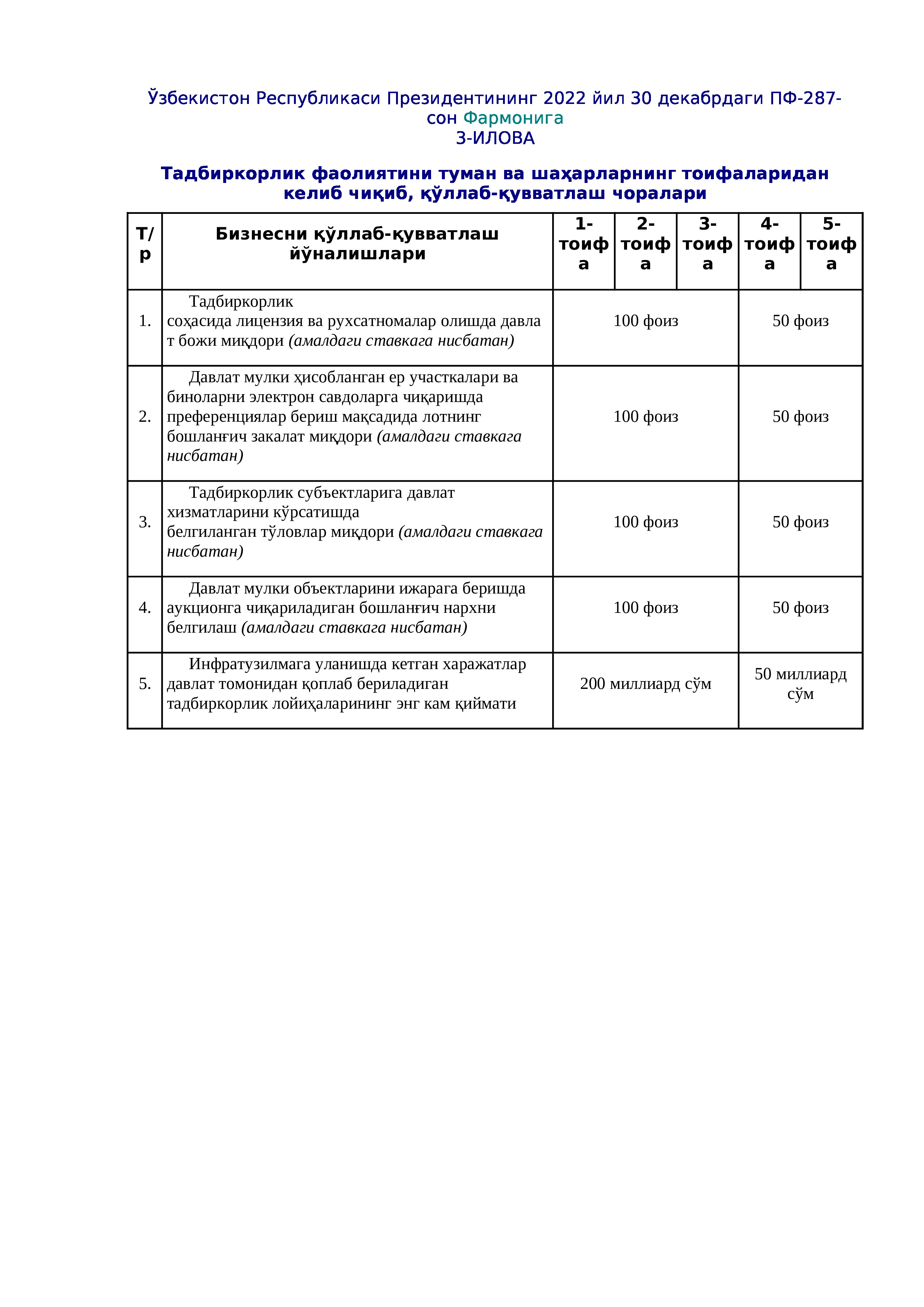 Тадбиркорлар учун қулай имкониятлар