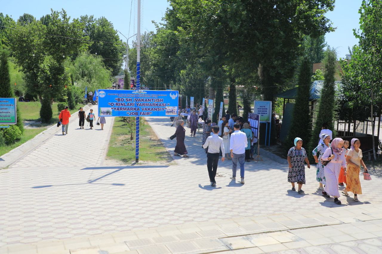 Бугун, 24 июнь куни Мингбулоқ тумани Дўстлик маданият ва истироҳат боғида олий таълим, касб-ҳунар ҳамда техникумларнинг 2021-2022 ўқув йили битирувчиларини бандлигини таъминлаш мақсадида туман ҳокимлиги, туман аҳоли бандлигига кўмаклашиш маркази ва Наманган давлат унверститети ҳамкорлигида "БЎШ ИШ ЎРИНЛАРИ" меҳнат ярмаркаси ўтказилди.